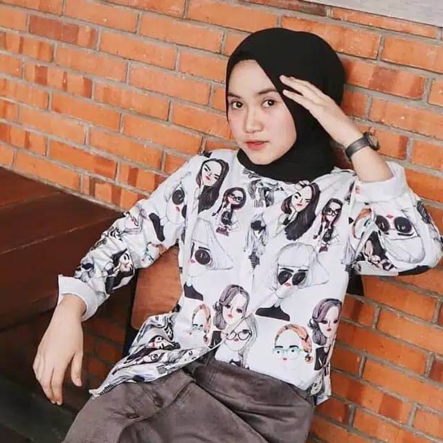 Chantique Kemeja Retro Face Bisa Bayar Ditempat Cod Kemeja Lengan Panjang Atasan Wanita Kemeja Kerja Fashion Muslimah Atasan Muslim Kemeja Panjang Baju Kerja Muslim