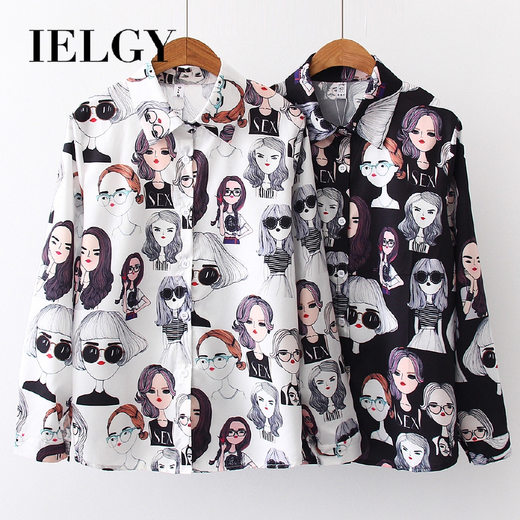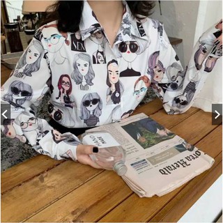 Bayar Di Tempat Kemeja Retro Kemeja Wanita Motif Wajah Lengan Panjang Kemeja Lengan Panjang Gambar Kartun Mdph Lazada Indonesia